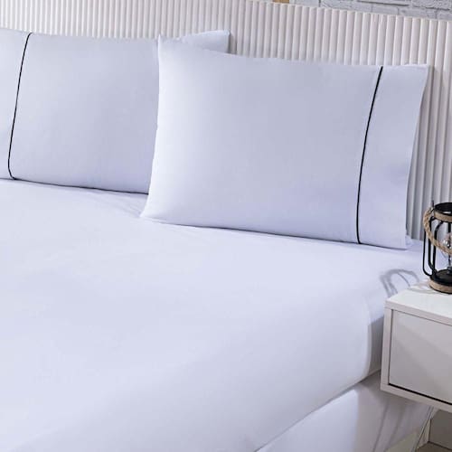 Jogo De Cama Lençol 100% Algodão Percal 150 Fios Queen Gran Moratta 3 Peças - Branco E Cinza O Jogo de Cama Gran Moratta é confeccionado com tecido Percal 100% Algodão, é Branco e possui um toque de cor em seu detalhe em Vivo.A combinação perfeita para suas noites de sono! Produto composto por: 01 Lençol de Baixo para Colchão 1,58m x 1,98m x 0,40m02 Fronhas 70cm x 50 cm Composição: Percal 150 Fios 100% Algodão