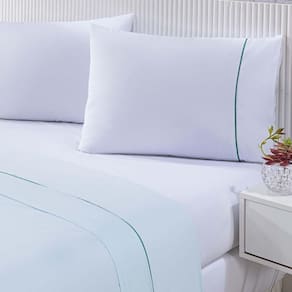 Jogo De Cama Lençol 100% Algodão Percal 150 Fios Queen Gran Moratta 4 Peças - Branco E Verde