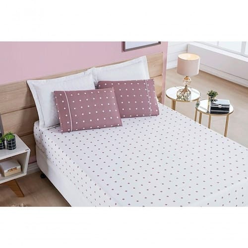 O Jogo de Cama Petit Poá possui tecido micro percal 200 fios com estampa clássica com bolinhas, é fácil de lavar e seca rápido!