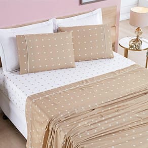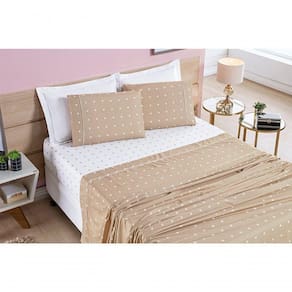 Jogo De Cama Lençol 200 Fios Petit Poá King 04 Peças - Caqui