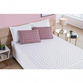 O Jogo de Cama Petit Poá possui tecido micro percal 200 fios com estampa clássica com bolinhas, é fácil de lavar e seca rápido! Produto composto por: 01 Lençol de baixo c/ elástico p/ colchão de 1,88m x 88cm x 30cm de altura01 Fronha 70cm x 50cm Composição: Tecido: 100% Poliéster
