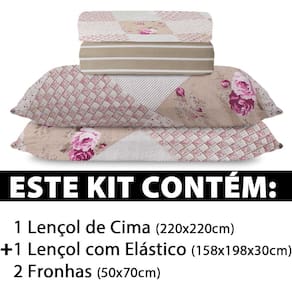 Este Kit Contém: 1 Lençol de cima (2,20cm x 2,20cm) 1 Lençol com Elástico (1,58cm x 1,98cm) 2 Fronhas de Travesseiros (50cm x 70cm)