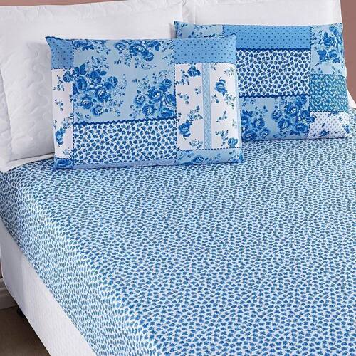 Jogo De Cama Lençol Bouti Estampado Casal Padrão 03 Peças - Azul Sereno