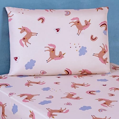 Marca: Bia Enxovais | Estampa: Não se Aplica | Medidas: 01 Lençol de Baixo com elástico 90cm x 1,90m x 30cm 01 Fronha 70cm x 50cm | Número de Peças: 02 Peças | Material: Poliéster | Cor Predominante: Unicórnio | Cama Indicada: Solteiro