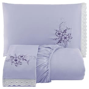 Jogo De Cama Lençol Casal Bordado Advance 3 Peças - Lilás