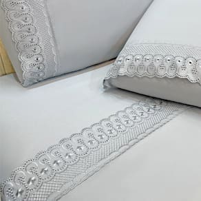 Jogo de Cama Lençol Casal D Mais 4 Peças - Cinza - 100% Poliéster