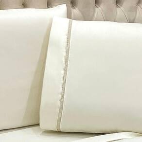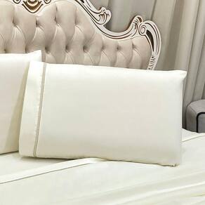Jogo De Cama Lençol Casal Realce Percal 400 Fios 4 Peças - Palha
