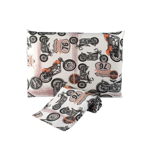 Jogo de cama lençol em malha solteiro moto 2 peças Utilizamos matérias-prima de excelente qualidade que resistem à processo de lavagem, mantendo a beleza e durabilidade do produto. Contém na embalagem: 01 lençol de baixo com elástico 1,88m comprimento x 88cm largura x 30 altura 01 fronhas 70cm x 50cm Composição: 100% algodão - fio penteado 30.1 - anti pilling não faz bolinhas Atenção: a foto apresentada no anuncio pertence ao nosso atelier, é a foto do produto cuidado com as falsificações As cores podem mudar de acordo com o monitor. fique atento à descrição do produto.