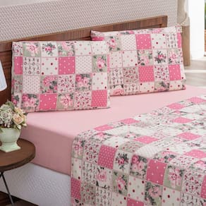 Jogo De Cama Lençol Matrix Queen Percal 4 Peças Rosa 100% Poliéster