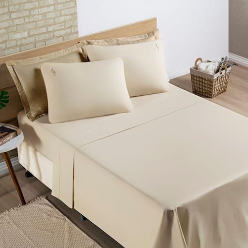 Jogo De Cama Lençol Percal 200 Fios 100% Algodão Liana King 04 Peças - Caqui O Jogo de Cama Liana é confeccionado com tecido percal 200 fios 100% algodão, possui lindos detalhes bordados. Produto composto por: 01 Lençol de cima 2,85m x 2,60m01 Lençol de baixo c/ elástico p/ colchão de 2,03m x 1,93m x 40cm alt.02 Fronhas 70cm x 50cm Composição: 100% Algodão Percal 200 Fios Ean: 7908125131254