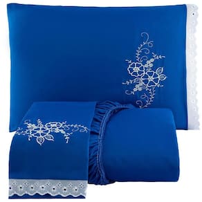 Jogo De Cama Lençol Queen Bordado Advance 3 Peças Azul 100% Poliéster