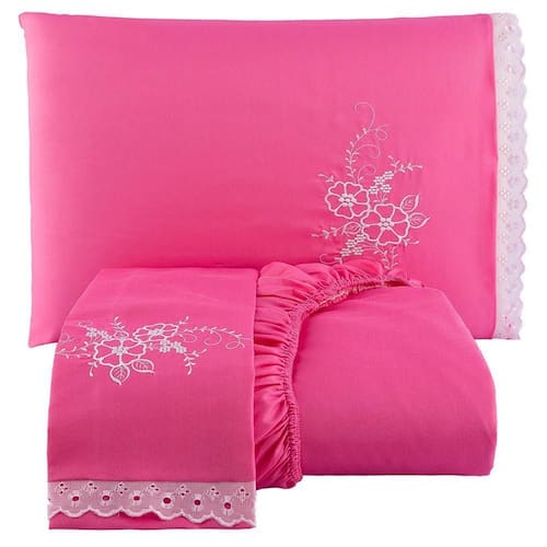 Jogo De Cama Lençol Queen Bordado Advance 3 Peças Pink 100% Poliéster