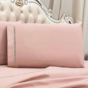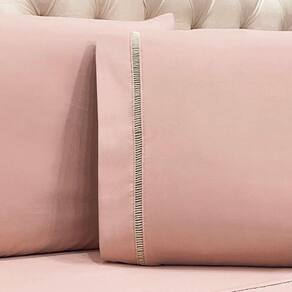 Jogo De Cama Lençol Queen Realce Percal 400 Fios 3 Peças - Rosê