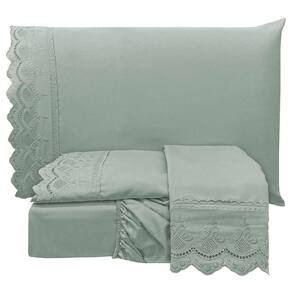 Jogo De Cama Lençol Realce King 4 Peças Percal 300 Fios Bordado Inglês Macio - Cinza Chumbo - Única