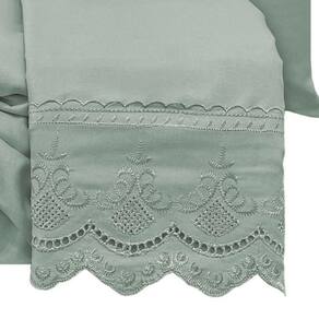 Jogo De Cama Lençol Realce King 4 Peças Percal 300 Fios Bordado Inglês Macio - Cinza Chumbo
