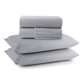 Jogo De Cama Lençol Sereno Queen Em Malha Algodão 4 Peças Cinza 100% Algodão