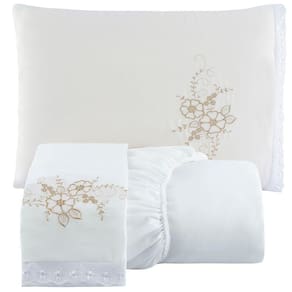 O destaque fica por conta das fronhas, que possuem detalhes bordados elegantes, adicionando um toque de luxo e charme ao conjunto. Além disso, o lençol é durável e fácil de cuidar, mantendo sua aparência impecável por muito tempo.