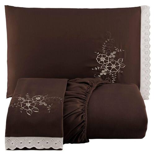 O destaque fica por conta das fronhas, que possuem detalhes bordados elegantes, adicionando um toque de luxo e charme ao conjunto. Além disso, o lençol é durável e fácil de cuidar, mantendo sua aparência impecável por muito tempo.
