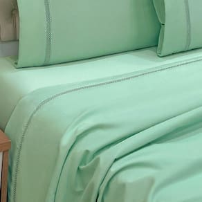 Jogo De Cama Lençol Stella King 4 Peças Percal 300 Fios Ponto Infinito Macio Verde Tiffany 100% Poliéster