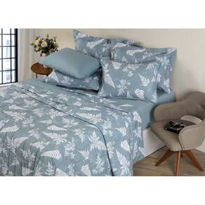 Jogo de Cama Lynel Samambaia Malha 3 Peças Queen Azul