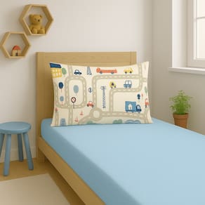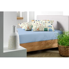 O lençol conta com uma cartela de cores lisas, já as fronhas são estampadas, com estampas modernas e atuais.