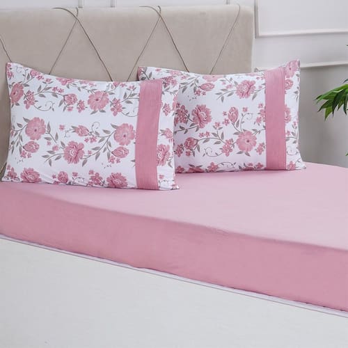Jogo de Cama Malha 3 Pçs Casal Bella Cama 138x188cm Aster - 100% Algodão, Gramatura 125g/m²; Malha, Fio 30/1 Penteado, Fronha com Pala