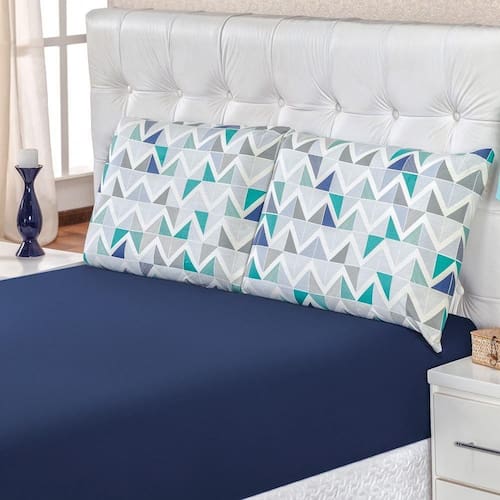 Jogo De Cama Malha Casal Quality 03 Peças - Geométrico Azul
