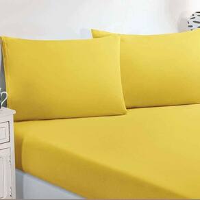 Jogo De Cama Malha Lençol 100% Algodão Gran Moratta 3 Peças King - Amarelo