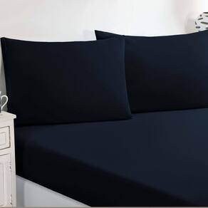 Marca: Enxovais Davy | Estampa: Não se Aplica | Medidas: 01 Lençol Casal Avulso de Baixo para colchão 1,58m x 1,98m x 0,30m (Elástico na volta toda)02 Fronhas 70cm x 50cm | Número de Peças: 03 Peças | Material: Agodão | Cor Predominante: Azul Marinho | Cama Indicada: Queen
