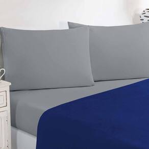 Jogo De Cama Malha Lençol 100% Algodão Gran Moratta 4 Peças Casal - Azul Royal/cinza