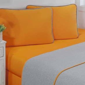 Jogo De Cama Malha Lençol 100% Algodão Urbano 4 Peças King - Laranja/mescla