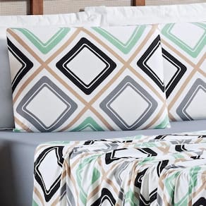 Contém um lençol de baixo com elástico, um lençol de cima e duas fronhas.
