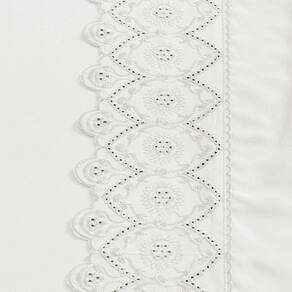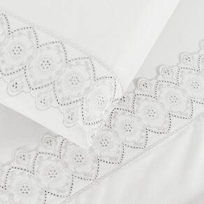 Tecido: Micropercal 200 fios com detalhe em bordado inglês nas fronhas e no lençol de cima