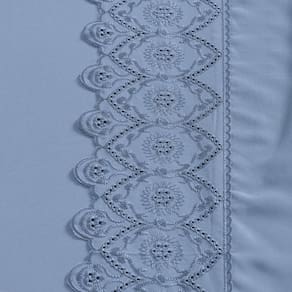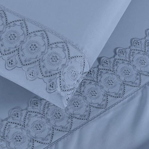 Tecido: Micropercal 200 fios com detalhe em bordado inglês nas fronhas e no lençol de cima