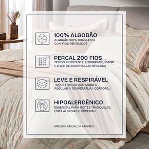Feito com 100% algodao de fios penteados, o tecido em percal 200 fios oferece um toque fresco e macio, ajudando a regular a temperatura e proporcionando menos atrito com a pele.