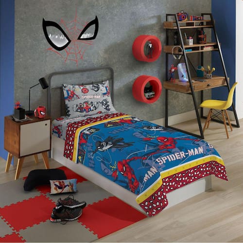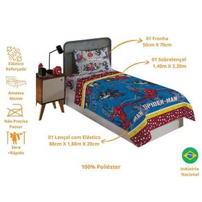 O jogo de cama da coleção Spider-Man ilustra o herói lançando suas teias, pronto para mais uma aventura. Ele possui o jeito Lepper, com um tecido de microfibra cheio de maciez, boa durabilidade, fácil de lavar, secagem rápida e ótimo caimento na cama, já que não amassa! A hora de dormir dos pequenos, junto de seu personagem favorito, pode ser mais alegre, mais divertida, mais Lepper.