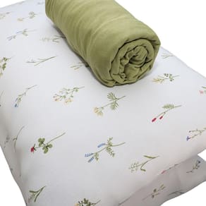 Conteúdo e Medidas: Jogo de Cama Malha com Elástico - King - 03 Peças. 01 Lençol Malha Liso com Elastico(1,93m x 2,03m x 0,40cm) 02 Fronha Malha Estampada(48cm x 68cm)