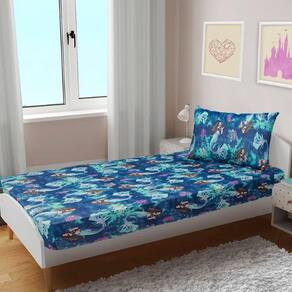 Jogo de Cama Portallar Solteiro Malha Mista Estampado Disney Ariel Mermaid 2 Pçs Azul