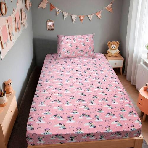 Conteúdo e Medidas: Jogo de Cama Malha Mista Estampado - Minnie Nuvem - 02 Peças 01 Lençol Malha Misto Estampado Com Elástico (88cm x 1,88m x 30cm) 01 Fronha Malha Mista Estampada (48cm x 68cm) (Para travesseiro até 50cm x 70cm)