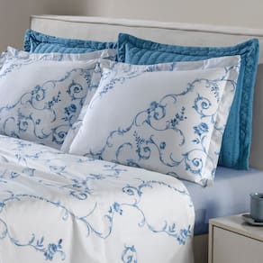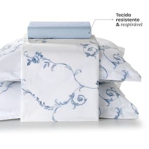 Jogo de Cama Queen 100% Algodao Percal 180 Fios Uni Dohler Kit 4 Pecas - Branco | Azul