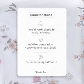 Transforme seu quarto com o Jogo de Cama Queen Uni Dohler, desenvolvido para quem valoriza o toque macio do percal 100% algodao e a durabilidade dos 180 fios penteados. Indicado para colchoes de ate 35 cm de altura e composto por 4 pecas.