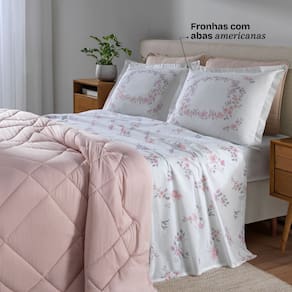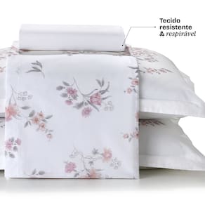 Jogo de Cama Queen 100% Algodao Percal 180 Fios Uni Dohler Kit 4 Pecas - Branco | Rosa