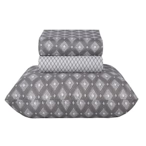 Sua cama aconchegante e seu quarto lindamente decorado com a estampa geométrica em tons de grafite para uma decoração moderna e elegante