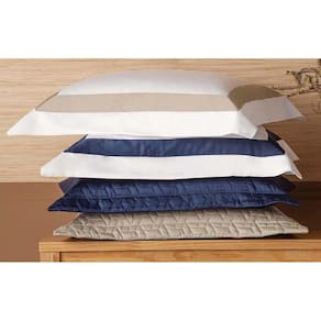 Acabamento com moldura azul nas fronhas e no lençol superior. Excelente opção de presente para a si mesmo ou alguém especial. Certamente ficará guardado na memória.