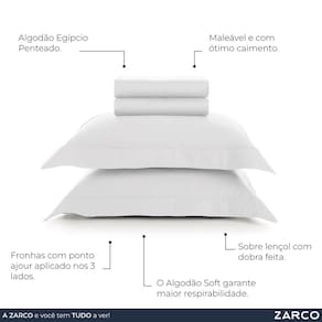 . Itens inclusos: 1 Lençol com Elástico; 1 Sobre lençol; 2 Fronhas.