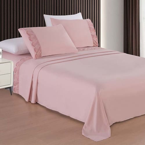 Transforme o ambiente do seu quarto com o Jogo de Cama Marquesa, um conjunto que une delicadeza e estilo com o conforto que você merece.