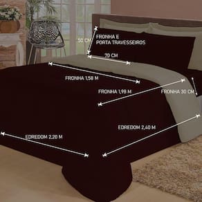 Jogo de Cama Queen com Edredom Lençol Fronha Função Cobre Leito e Cobertor - Marrom
