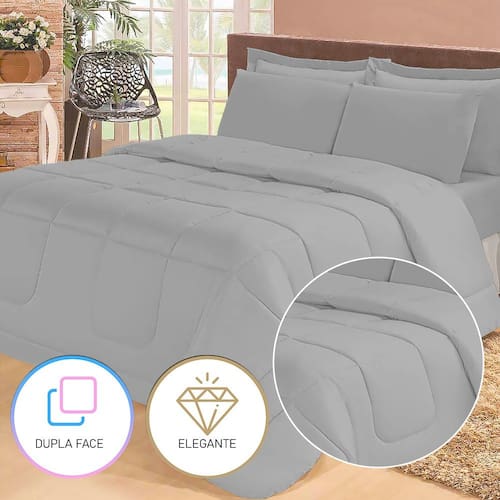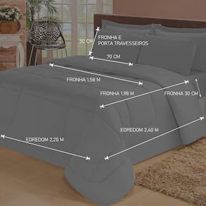 Jogo de Cama Queen com Edredom Lençol Fronha Função Cobre Leito e Cobertor - Cinza