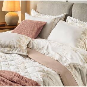 Jogo de Cama Queen Mariah 300 Fios Karsten Jogo de Cama Queen 300 Fios Karsten O jogo de cama Mariah apresenta estampa floral dimensionada em tons suaves, com flores que emolduram as fronhas e criam leve contraste com o cordonê nas abas. Já o sobre lençol e a colcha recebem a estampa com flores imponentes por todo o corpo, conferindo movimento e fluidez. O lençol com elástico também conta com padronagem sutil, que coordena bem com o restante da cama. Confeccionado em algodão egípcio 300 fios altamente respirável, combina conforto, beleza e harmonia. Contém:1 lençol de cima. Tamanho: 2,40m x 2,60m1 lençol de baixo com elástico. Tamanho: 1,60m x 2,00m x 40cm2 fronhas. Tamanho: 50cm x 70cm com 3 abas de 7cm Material: 300 Fios, 100% Algodão EgípcioEstampa: MariahMarca: Karsten Marca: Não Informado Ean: 7909156257241