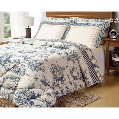 Especificações Técnicas Produto: Jogo De Cama Tamanho: Queen Modelo: Porcelana Marca: Amore Enxovais Tecido: Percal 180 Fios Material: 80% Algodão e 20% Poliéster Cor: Palha e Azul